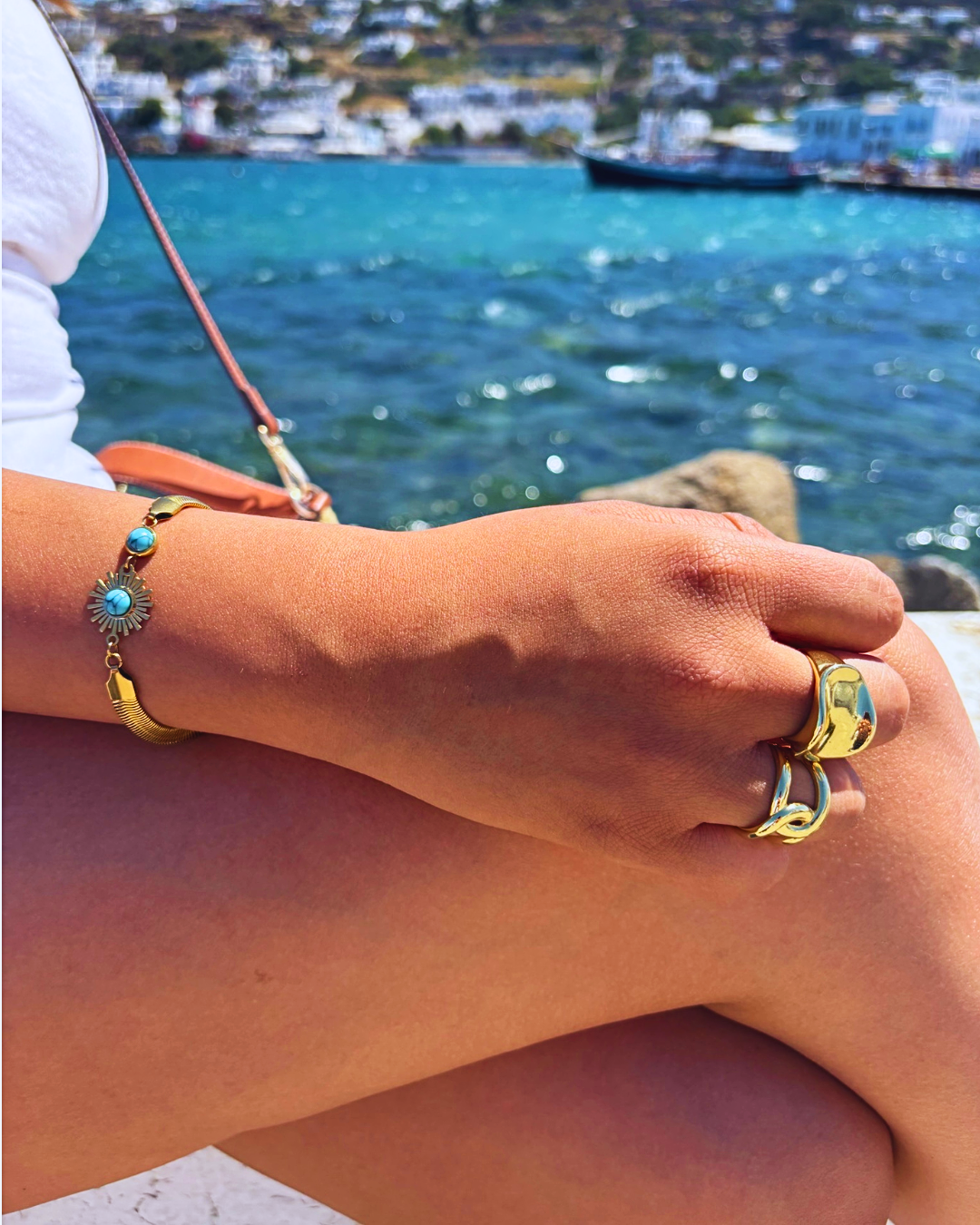 Der Ring Positano spiegelt mit seinen sanften, fließenden Formen die mediterrane Leichtigkeit und Eleganz der berühmten Amalfiküste wider – ein Hauch von italienischem Sommer für deine Hand.