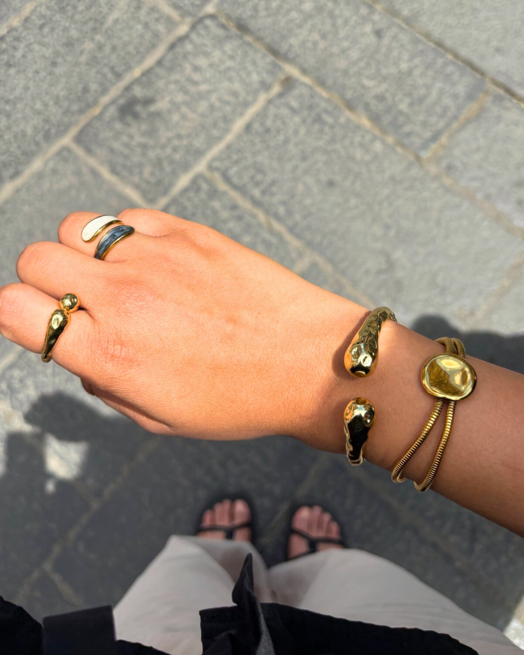 Dank ihres durchdachten Designs und der hochwertigen Materialien lassen sich die Produkte ganz leicht an deine individuelle Passform anpassen. Ob Ring oder Armreif – du kannst sie so formen, wie es für dich angenehm ist. Für ein Tragegefühl, das genauso einzigartig ist wie du selbst.